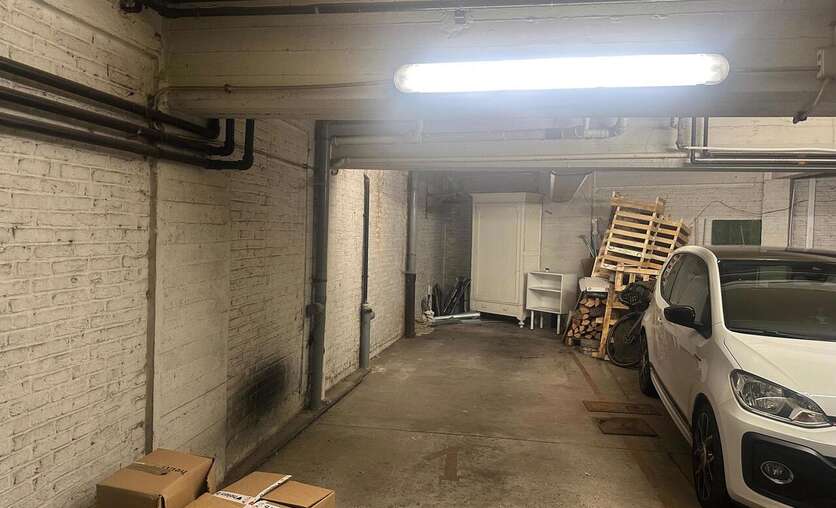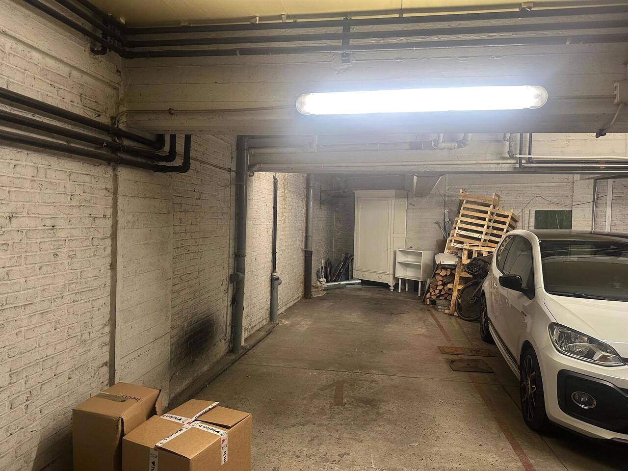 Beneden bieden de twee autostaanplaatsen voldoende ruimte zodat je zonder zorgen parkeert in het centrum van Mechelen.