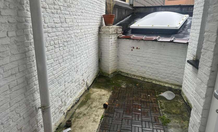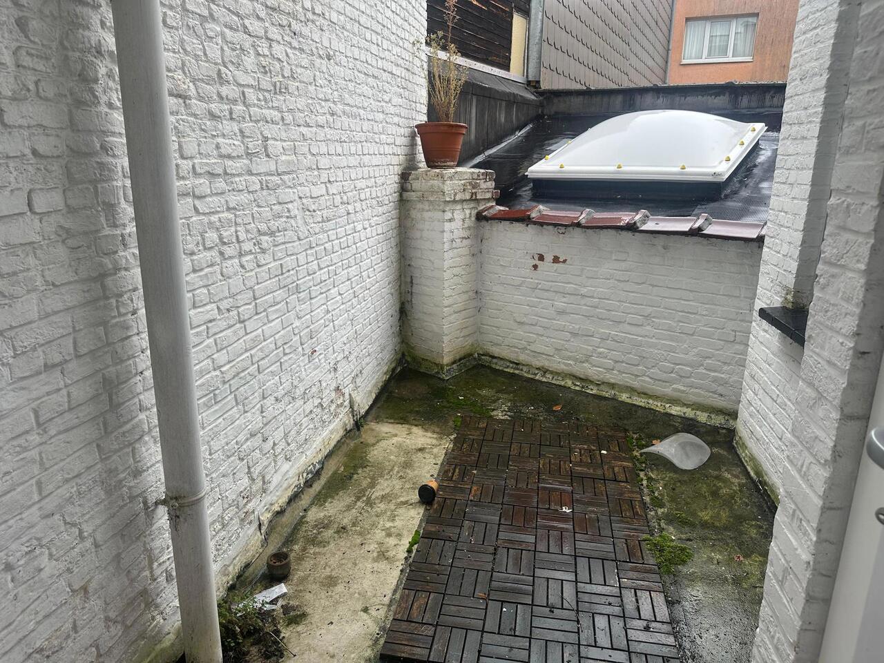 De lichtrijke open living biedt voldoende ruimte om een eethoek en salon naar wens in te richten. Verder bereik je een slaapkamer met plaats voor een groot bed en kasten, een kamer die kan dienen als kleine slaapkamer of bureauruimte en een badkamer met lavabo, toilet en douche in bad. Via de keuken met kookplaat, oven en frigo heb je toegang tot het praktische terras.