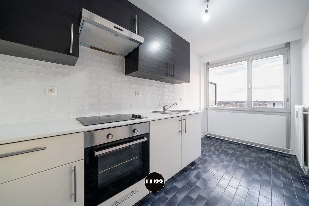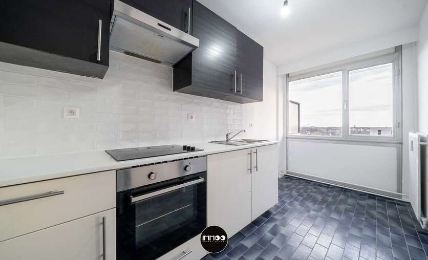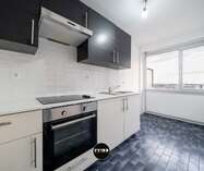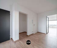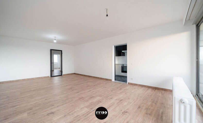 De ruime, open leefruimte baadt in het licht en vormt het hart van het appartement. Aansluitend bevindt zich de aparte, volledig uitgeruste keuken, stijlvol afgescheiden en afgewerkt met een karaktervolle blauwe tegel die zorgt voor een unieke en hedendaagse uitstraling.