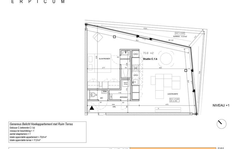 Het aangeboden appartement heeft een bewoonbare oppervlakte van 70,8 m² en beschikt over één slaapkamer, ideaal voor comfortabel en toekomstgericht wonen.