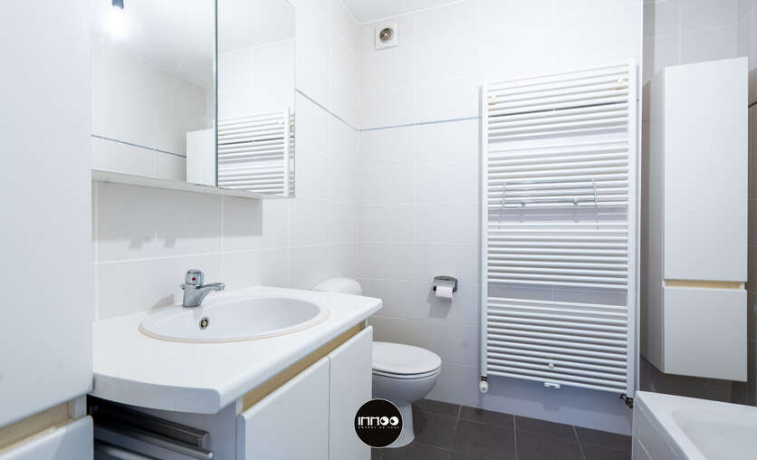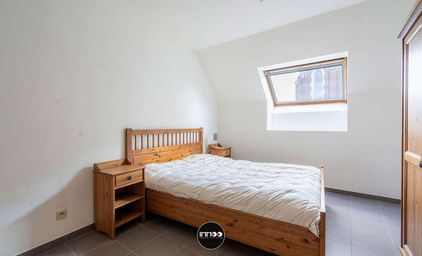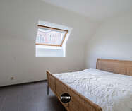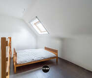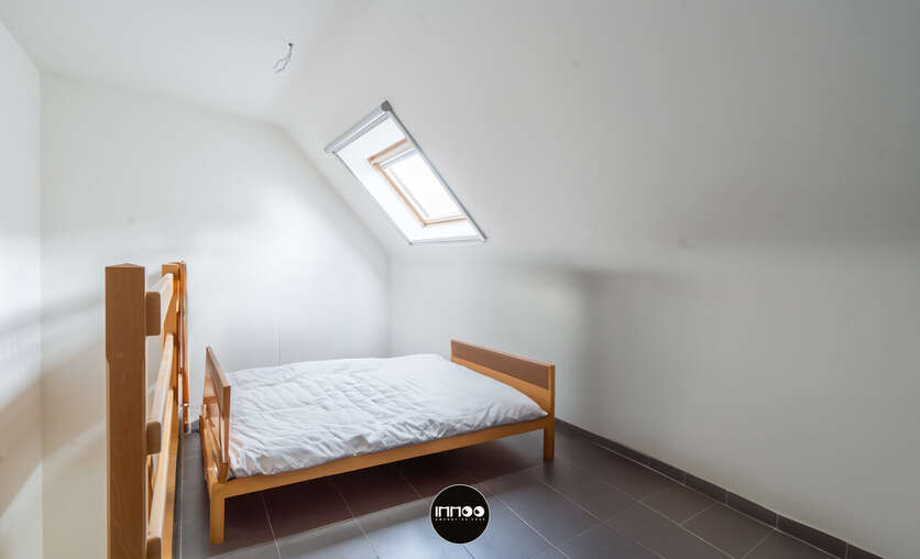 Via de trap bereik je de eerste verdieping waar de nachthal toegang geeft tot de badkamer met toilet, lavabomeubel met spiegelwand en ligbad – waarin het heerlijk vertoeven is. Aansluitend bereik je een eerste slaapkamer met Velux, en een tweede slaapkamer met Velux en toegang tot de derde verdieping. Daar is er nog een ruime kamer voorzien die kan dienen als slaapkamer, maar evengoed kan ingericht worden als bureauruimte, speel-of hobbykamer.