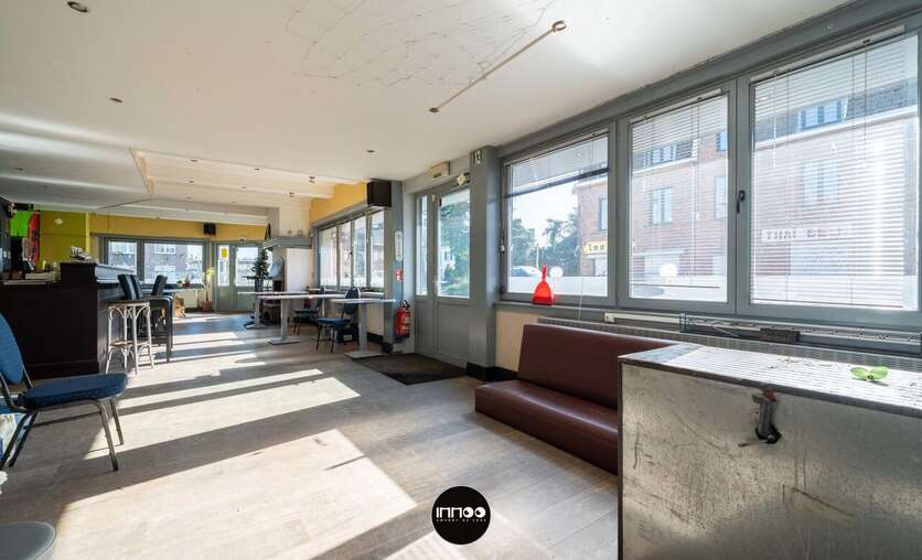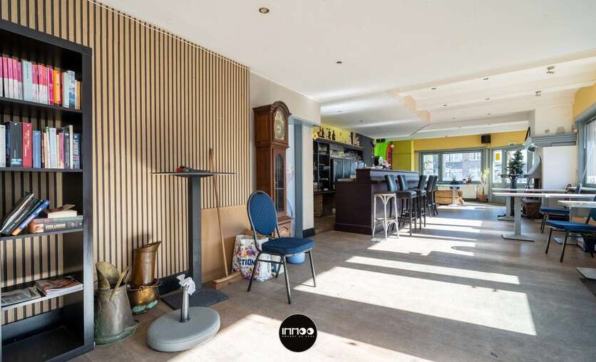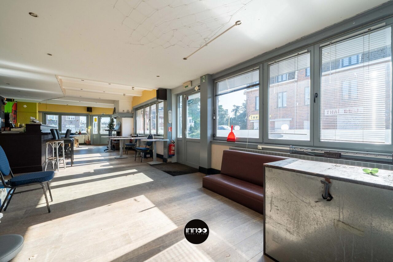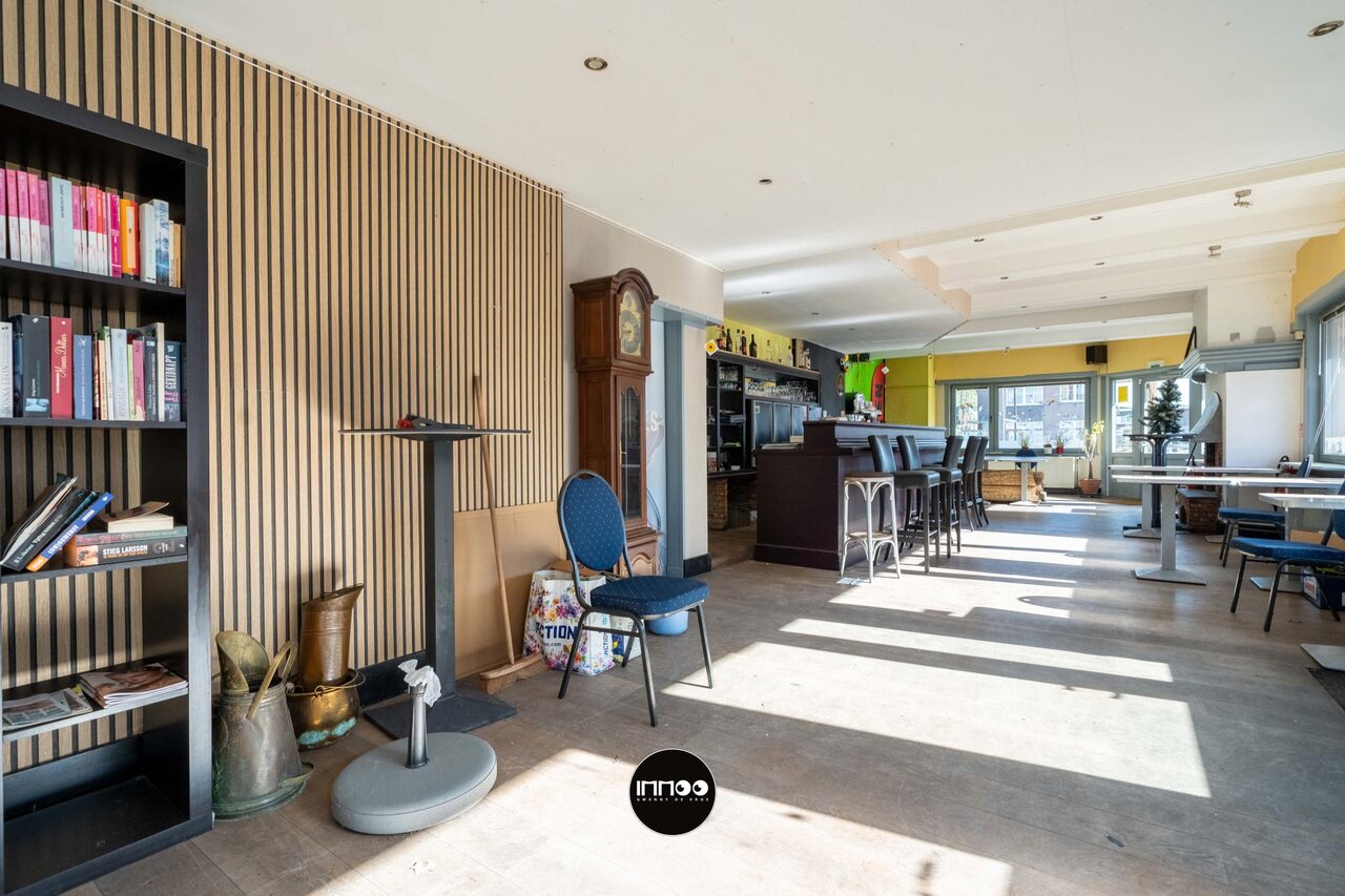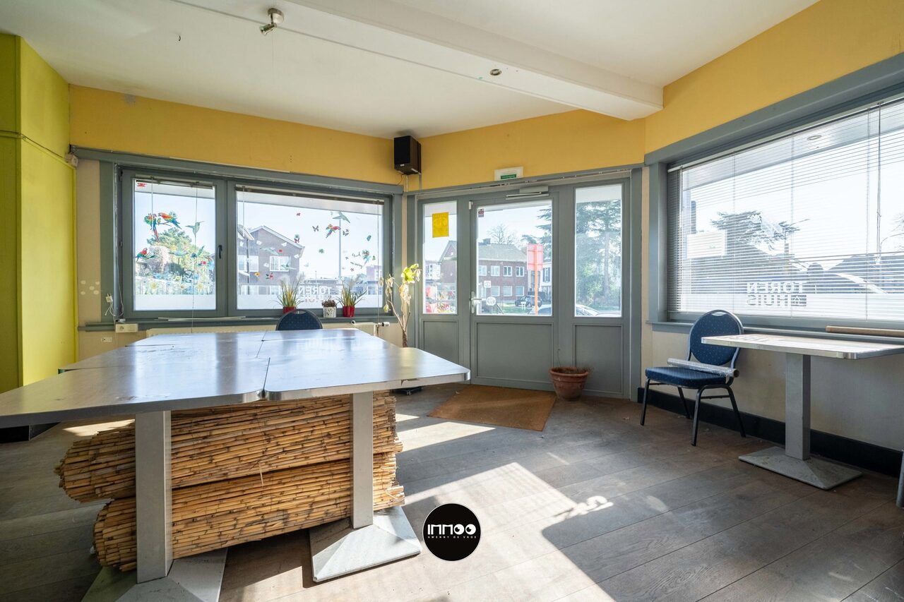 Dit veelzijdige pand combineert een ruim handelsgedeelte met een te renoveren woonst en biedt tal van mogelijkheden voor horeca of andere commerciële activiteiten.