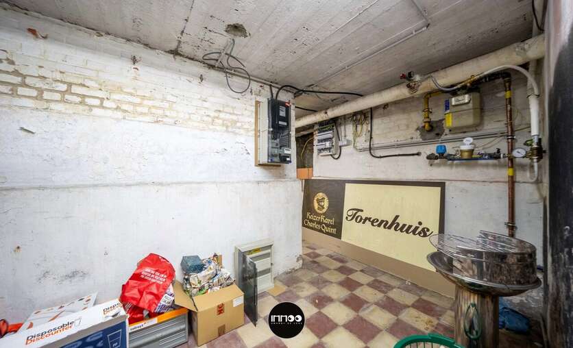 Onder de toog bevindt zich een kelderluik met toegang tot de volledig onderkelderde ruimte, ideaal voor stockage van dranken en voorzien van een tapinstallatie. Ook de Vaillant centrale verwarming is hier geplaatst.