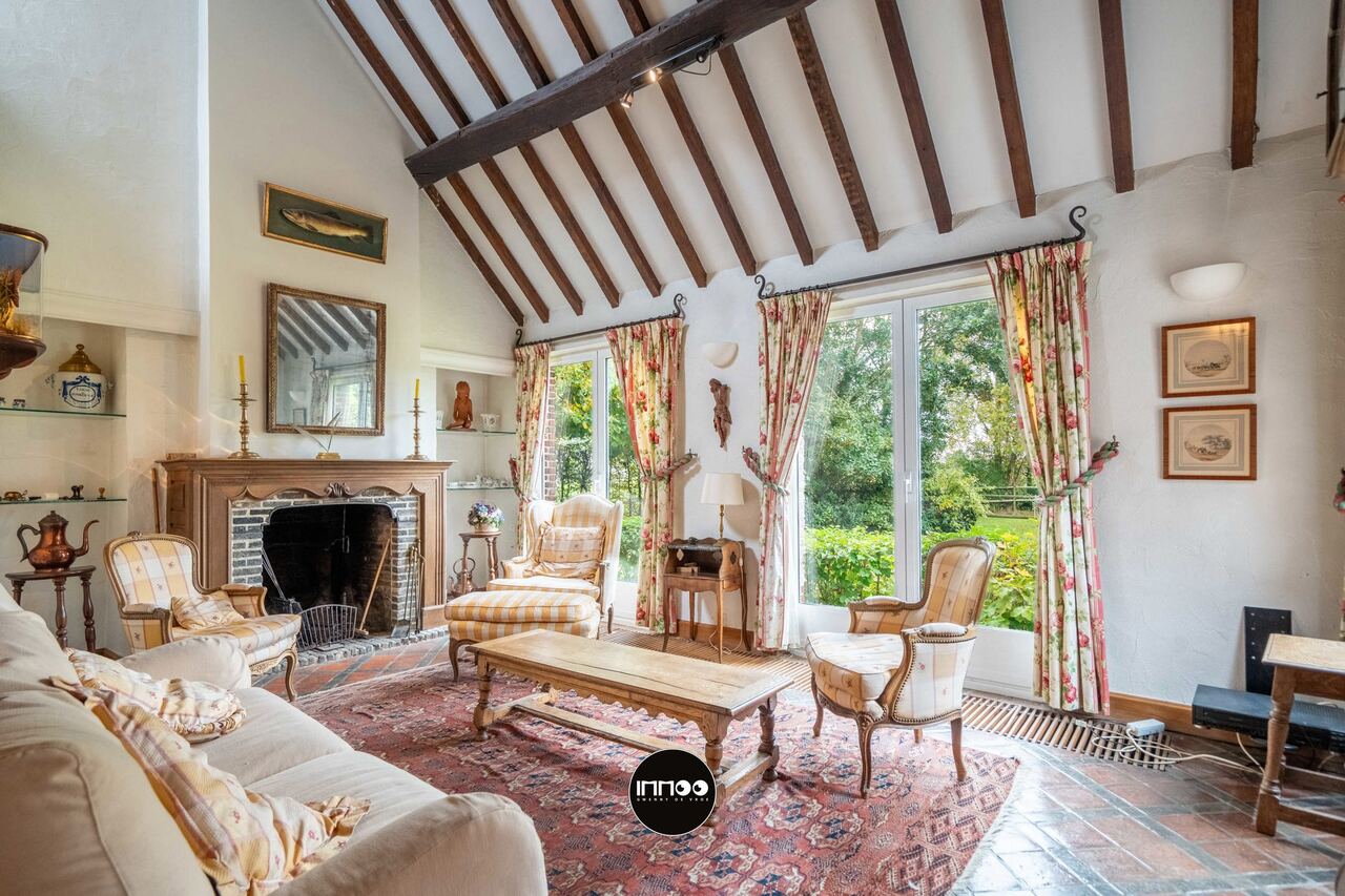 Via de oprijlaan van rustieke kasseien bereik je deze prachtige landelijke hoeve. De inkomhal geeft meteen toegang tot een gastentoilet, vestiaire en bureauruimte. Verder door bereik je de open living waar een majestueuze open haard centraal staat en voor warme familiemomenten zorgt. De grote ramen laten niet alleen een overvloed van natuurlijk licht binnen, maar geven ook een prachtig zicht op de tuin en paardenweides.