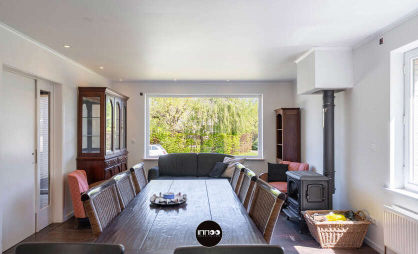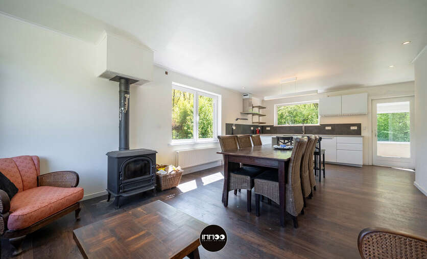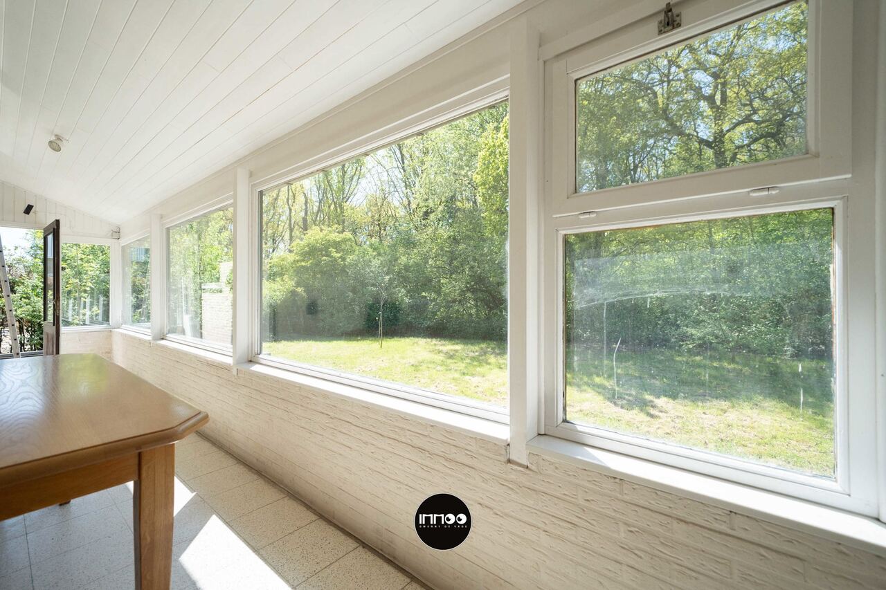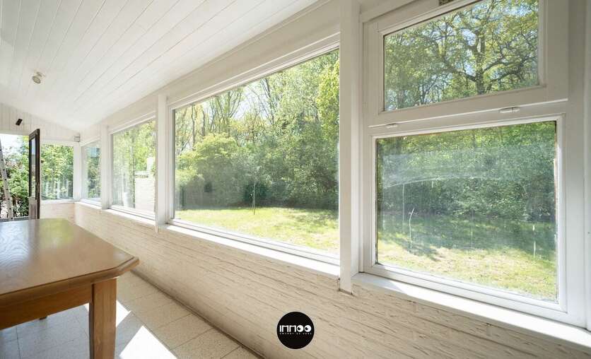 De veranda biedt een prachtig zicht op het groen en de tuin, waardoor u in alle seizoenen kan genieten van de natuurlijke omgeving.
