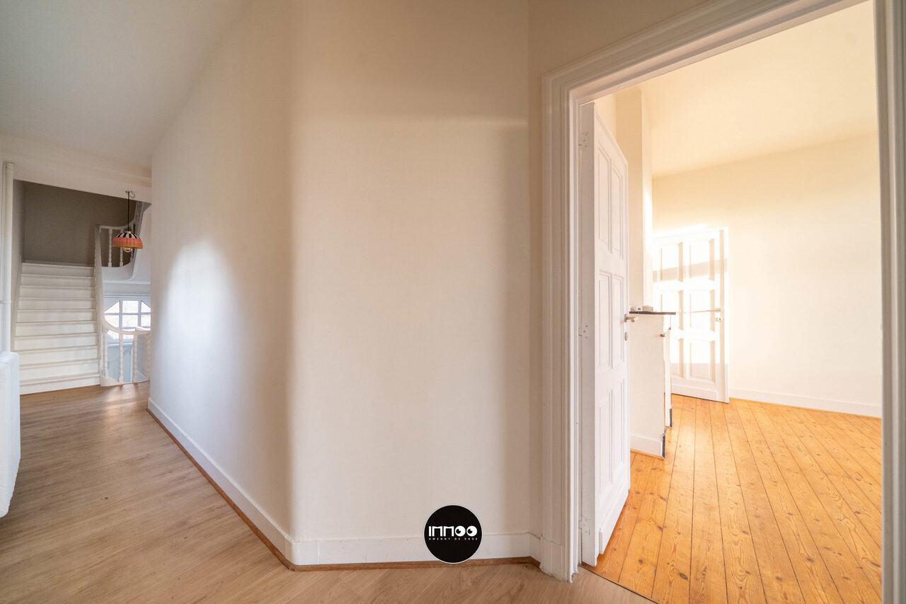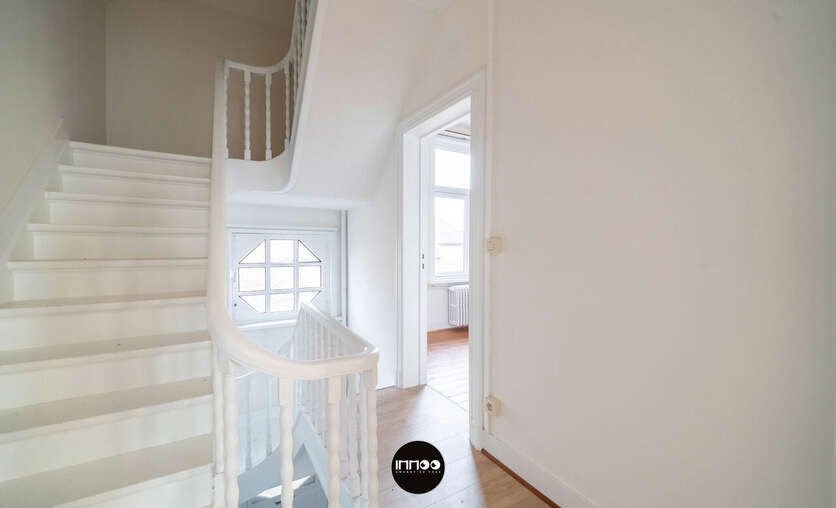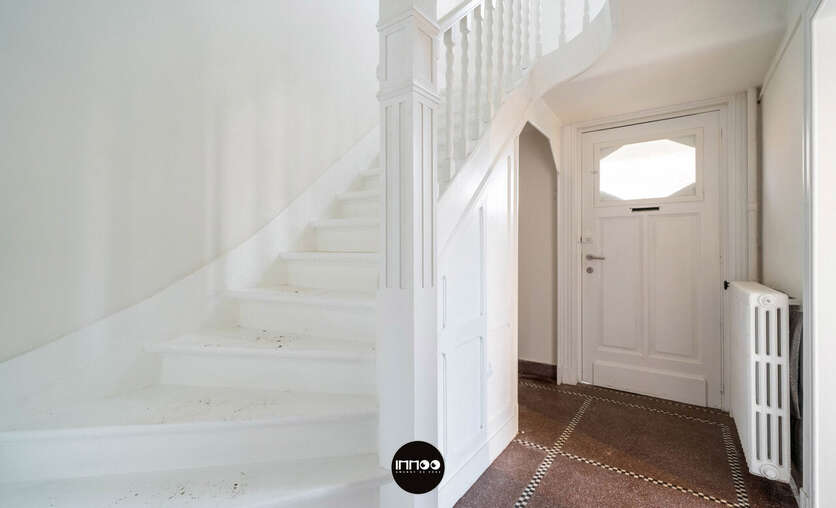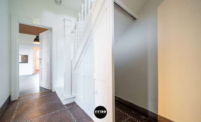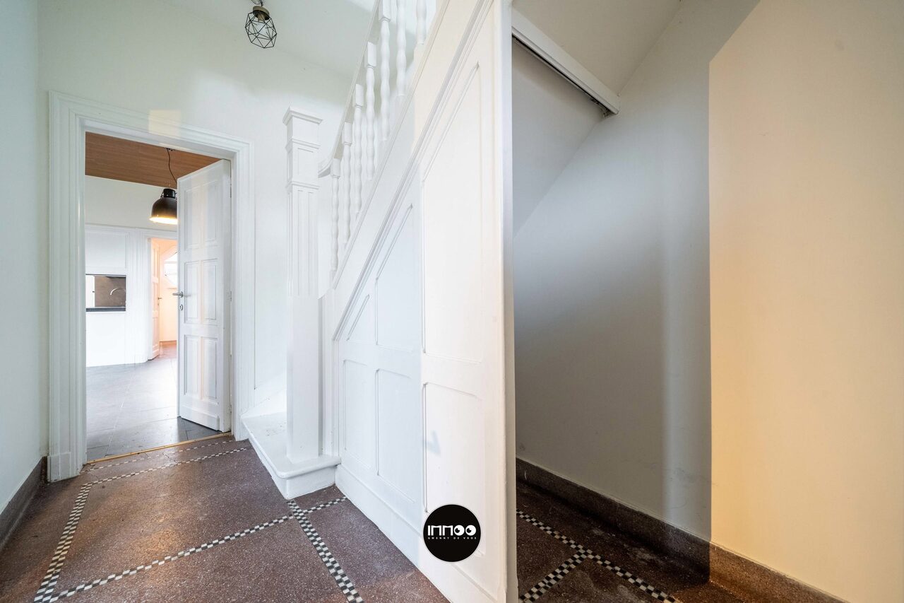 Deze charmante woning combineert karakter met ruimte en licht. Bij het betreden van de woning kom je in een ruime inkomhal met mogelijkheid tot vestiaire onder de trap. Aan de linkerkant bevindt zich de gezellige eetruimte, die aansluit op de lichtrijke woonkamer.