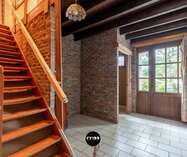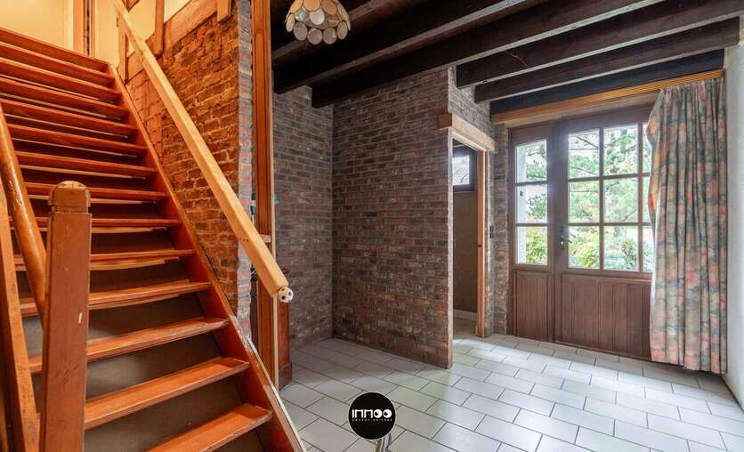 Via de voordeur betreed je deze woning uit het interbellum waar een ruime inkomhal uitgeeft op een gastentoilet, vestiaire en het trappenhuis. Verder door bereik je de open living met ruimte voor een eethoek en salon. Een open haard zorgt hier voor warme familiemomenten en het schuifraam geeft toegang tot het terras. De living loopt mooi over in de open keuken wat zorgt voor connectie en dynamiek. Aansluitend bereik je een hal die links toegang geeft tot de veranda en rechts tot de ruime garage. Daar heb je aangrenzend een bergruimte.