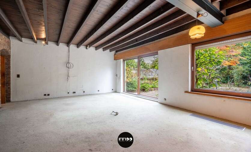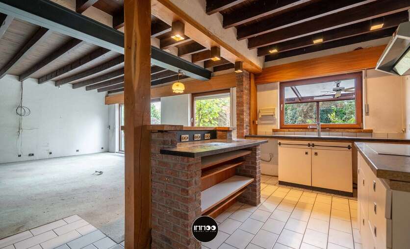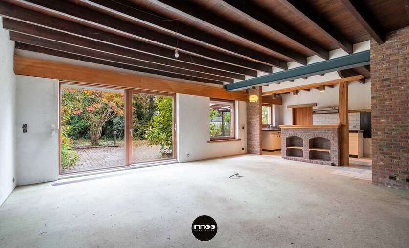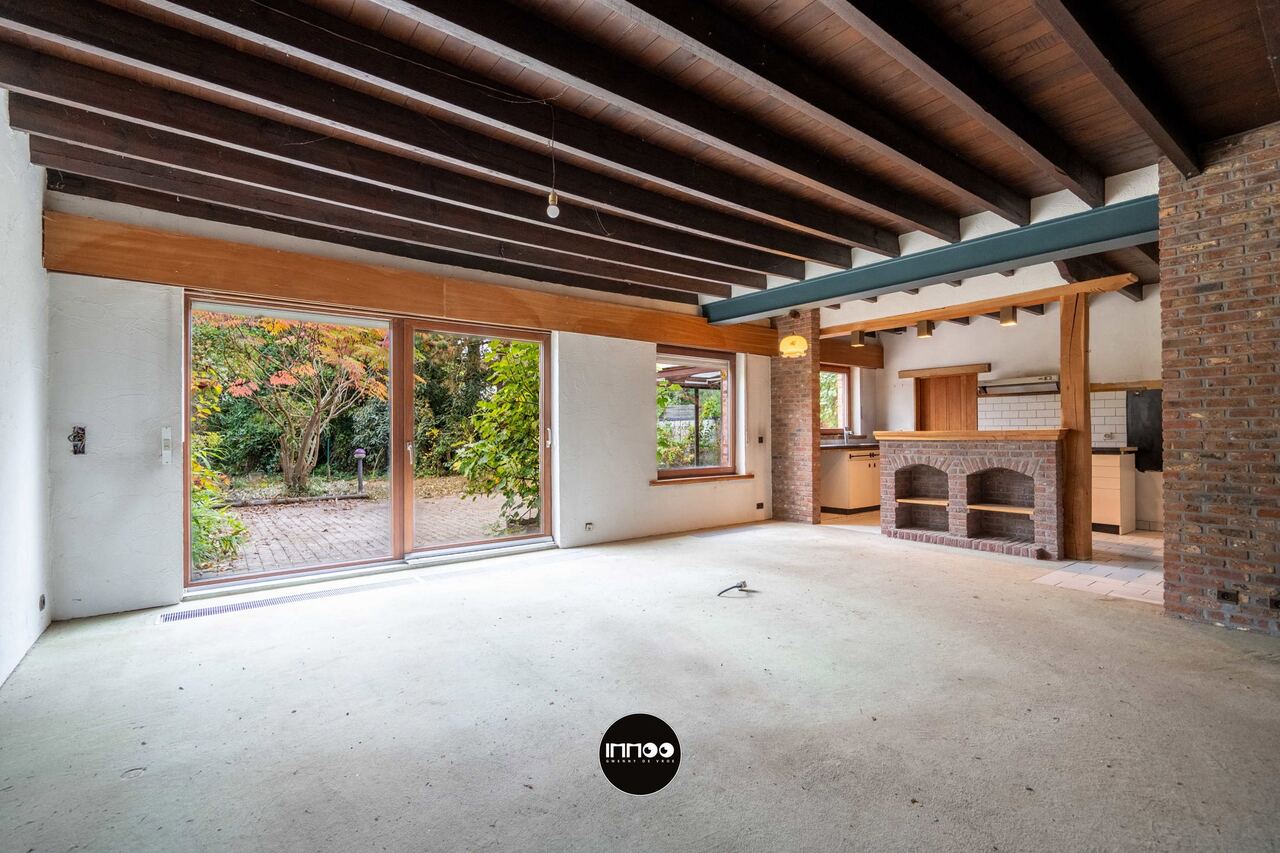 Via de voordeur betreed je deze woning uit het interbellum waar een ruime inkomhal uitgeeft op een gastentoilet, vestiaire en het trappenhuis. Verder door bereik je de open woonkamer met ruimte voor een eethoek en salon. Een open haard zorgt hier voor warme familiemomenten en het schuifraam geeft toegang tot het terras. De woonkamer loopt over in de open keuken wat zorgt voor connectie en dynamiek. Aansluitend bereik je een hal die links toegang geeft tot de veranda en rechts tot de ruime garage. Daar heb je aangrenzend een bergruimte.