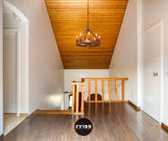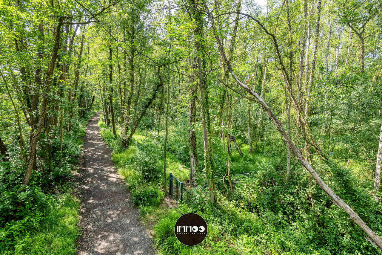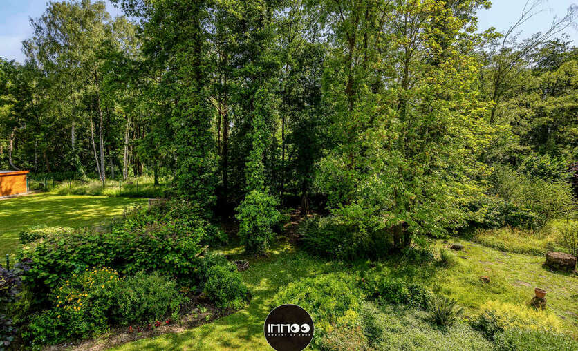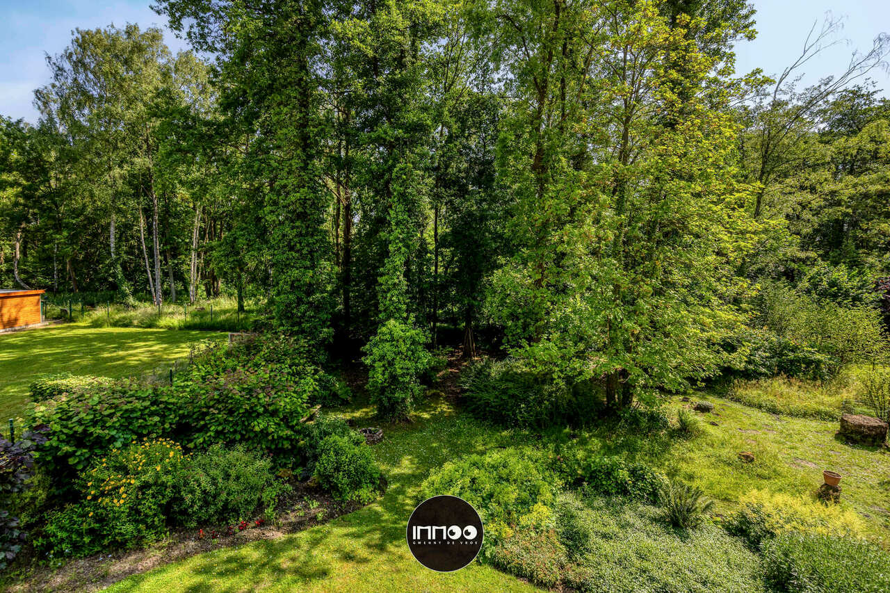 Via de leefruimte stap je naar een zonovergoten overdekt terras. Geniet van je ochtendkoffie terwijl de vogeltjes fluiten of ontspan met een boek in de bosrijke omgeving. Verder vind je op het gelijkvloers een wasruimte, een apart toilet, bergruimte en een garage met autostaanplaats en werkplek.