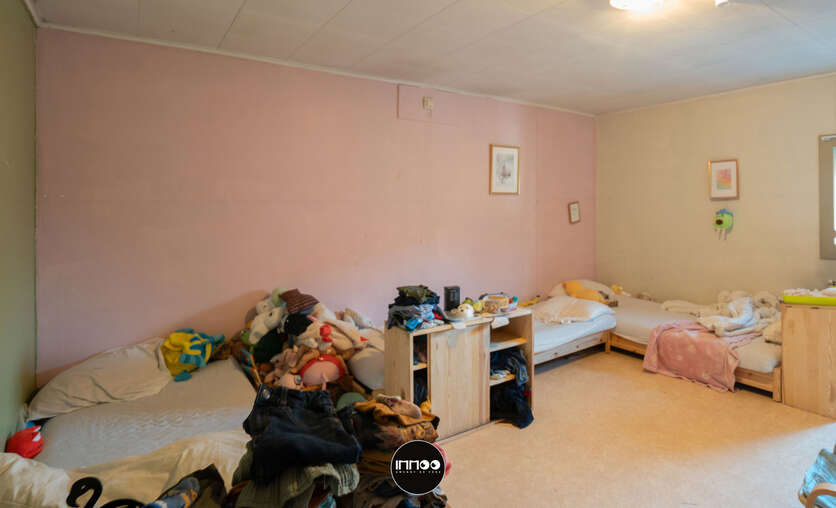 Via de voordeur betreed je meteen de open living waar een authentieke motieftegel je terug de tijd in katapulteert. Er is voldoende ruimte om een salon en eethoek naar wens in te richten en aansluitend kom je in de open keuken. Rechts heb je toegang tot een kelderruimte en rechtdoor kom je in de niet afgewerkte schuur. Vandaaruit heb je toegang tot de garage waar er ruimte is voor een wasplaats, een wagen en opbergruimte. Via een ladder kan je daar de niet afgewerkte zolder bereiken die mogelijkheden biedt voor het uitbreiden van de woning met extra badkamer of kamers.