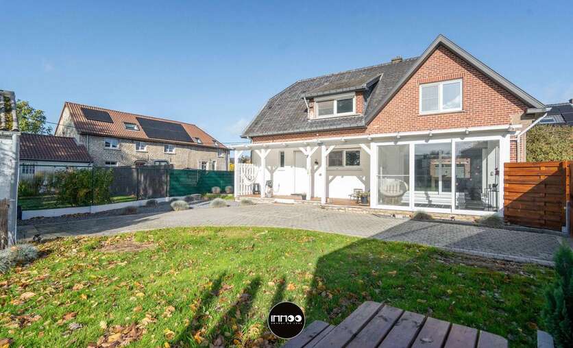 Op een boogscheut van de kerk van Berg kom je binnen in deze landelijke open bebouwing met ruime inkomhal. Die geeft links toegang tot de open living met salon en eethoek waarvan je toegang hebt tot de veranda waarin het heerlijk vertoeven is. Aansluitend betreed je de volledig uitgeruste keuken. Verder door heb je een apart toilet en toegang tot de garage met aansluitingen voor wasmachine en droogkast. Vandaar heb je ook toegang tot de kelder die kan gebruikt worden als hobby- of opslagruimte.