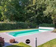 De tuin doet je meteen wegdromen van vakantie. Via het schuifraam in de woonkamer heb je toegang tot het zwembad. De tuin is mooi ingericht met verschillende eiken en een pad naar de achteren om het tuinhuis te bereiken.
