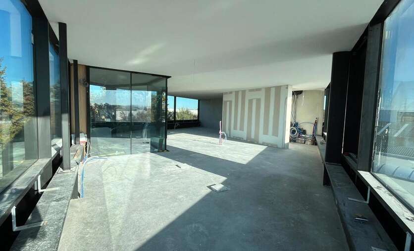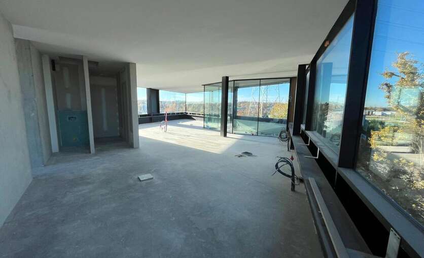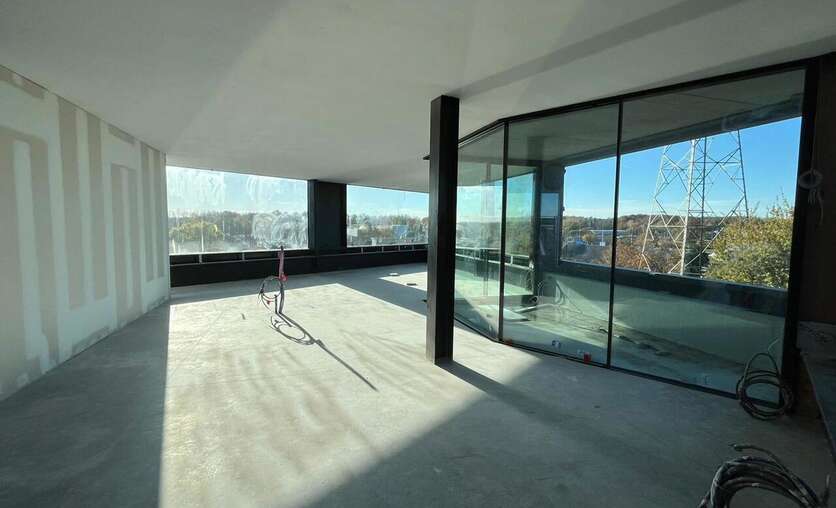 Op de tweede verdieping van een moderne nieuwbouw bevindt zich deze lichte en ruime casco kantoorruimte, volledig klaar om naar eigen stijl en behoeften ingericht te worden. De grote raampartijen zorgen voor een overvloed aan natuurlijk licht en bieden een indrukwekkend uitzicht op het economisch knooppunt van Kampenhout-Sas.