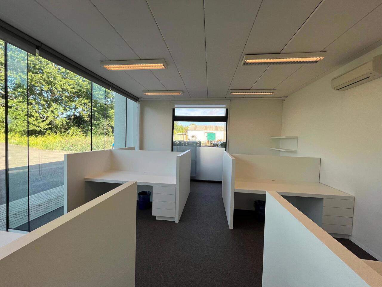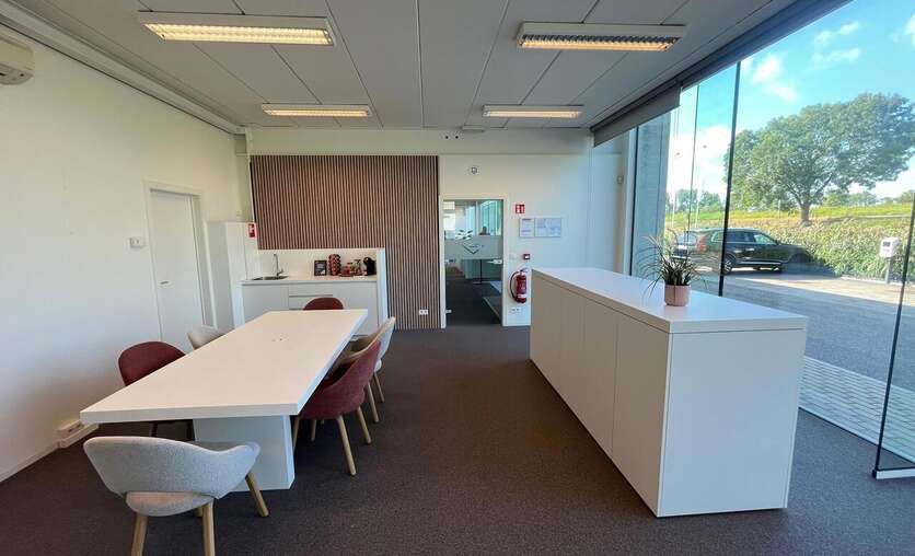 Zo kan je ook de aangrenzende bureauruimte van zo'n 66m² met 6 bureau's en vergaderruimte bijhuren. Daar deel je een inkomhal, sanitair en eetruimte met het bedrijf ernaast.