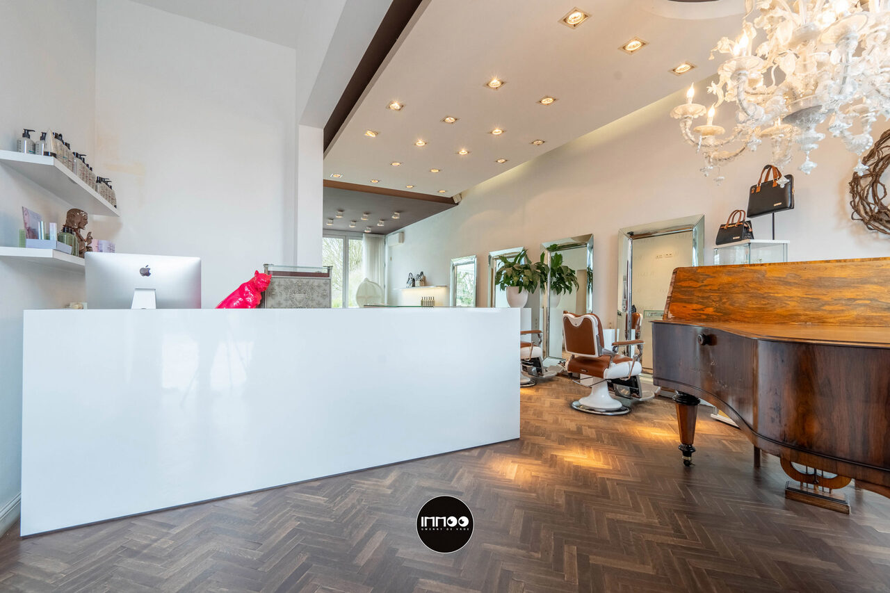 Stap binnen in de elegante handelsruimte (71m²) die momenteel dienstdoet als kapperszaak. De mooi afgewerkte voortuin en oprit, perfect als parkeerplaats, zijn uiterst handig voor meerdere wagens te stationeren.