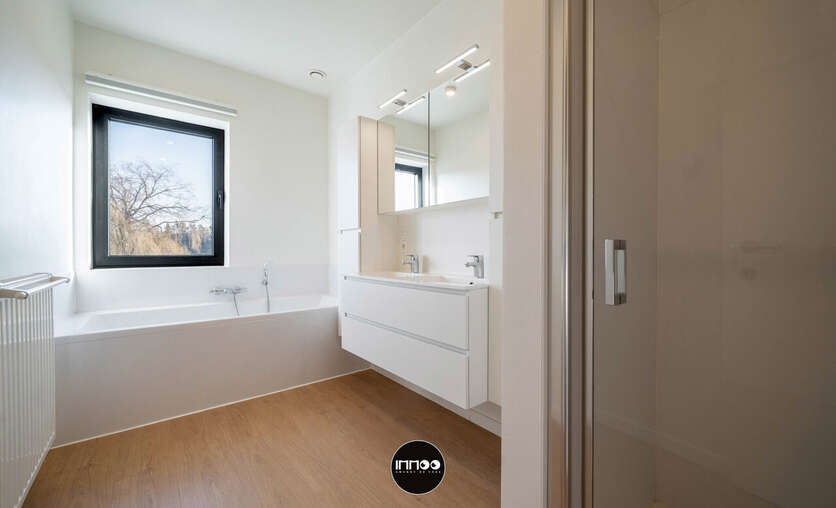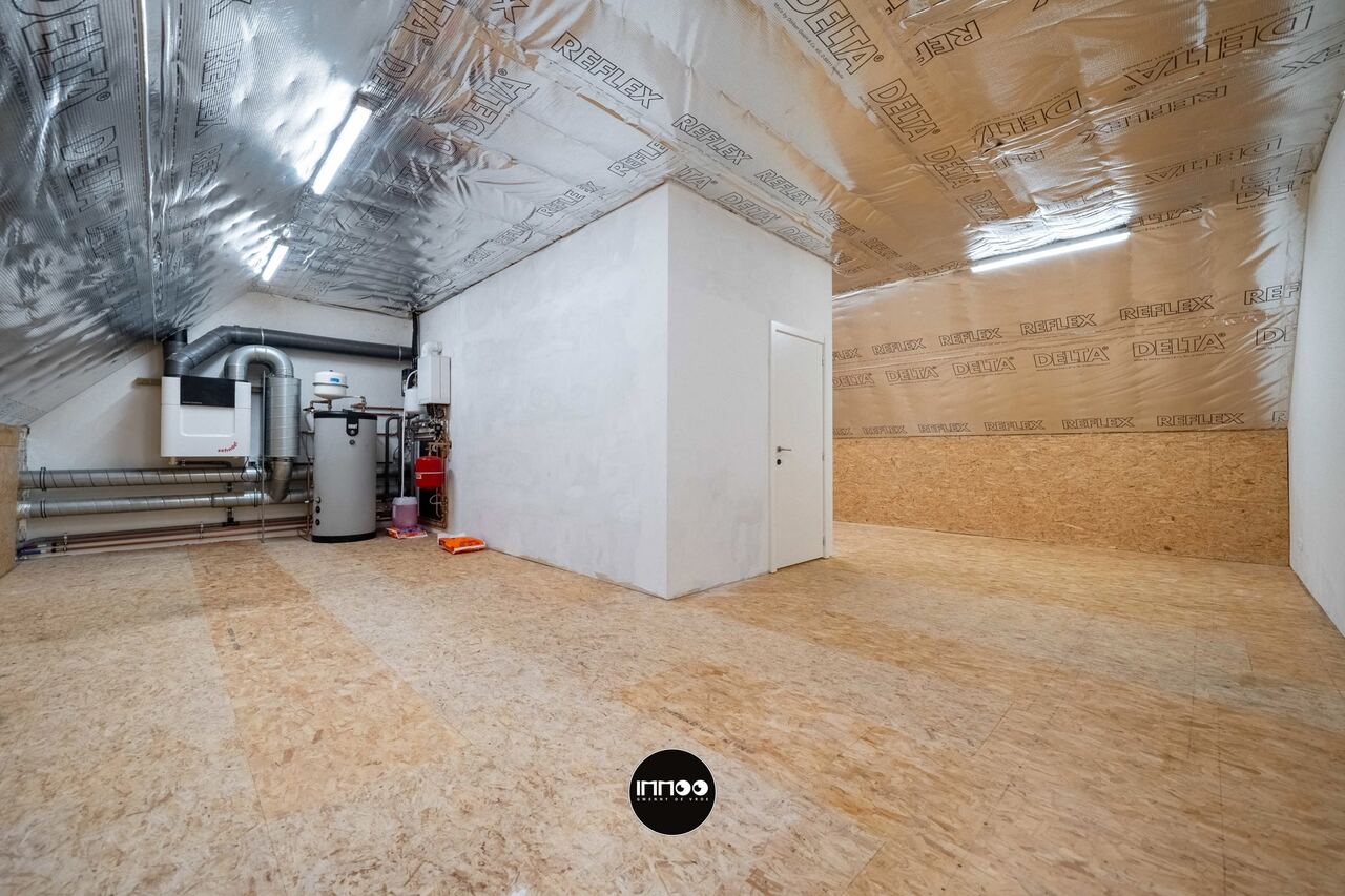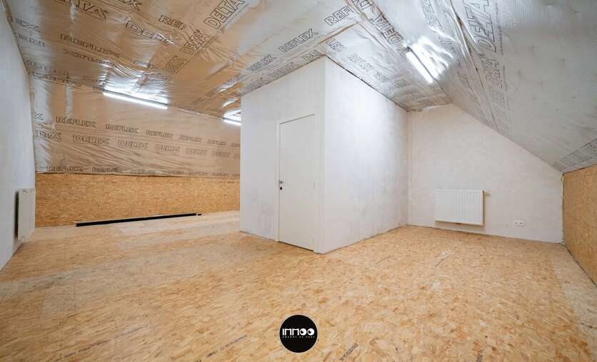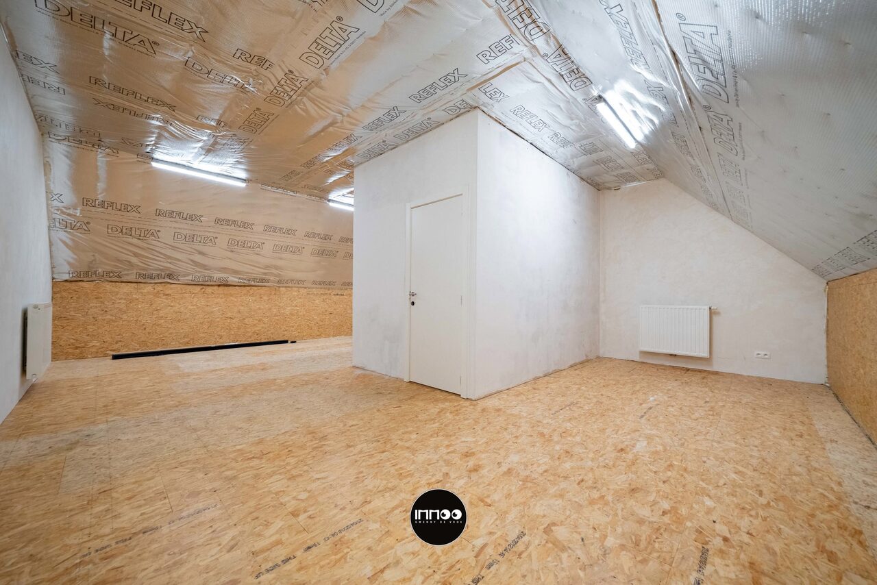 Op de eerste verdieping geeft de nachthal toegang tot drie volwaardige slaapkamers. De badkamer is uitgerust met een douche, een bad en een dubbele lavabo, terwijl een apart toilet extra comfort biedt. Bovendien is er een zolderruimte aanwezig die nog afgewerkt kan worden en potentieel heeft voor twee extra kamers.