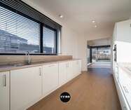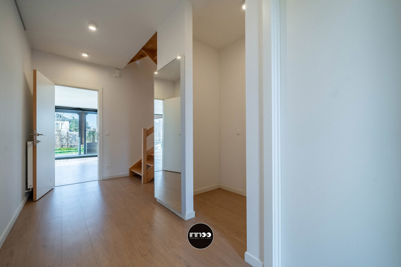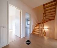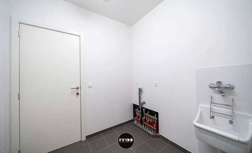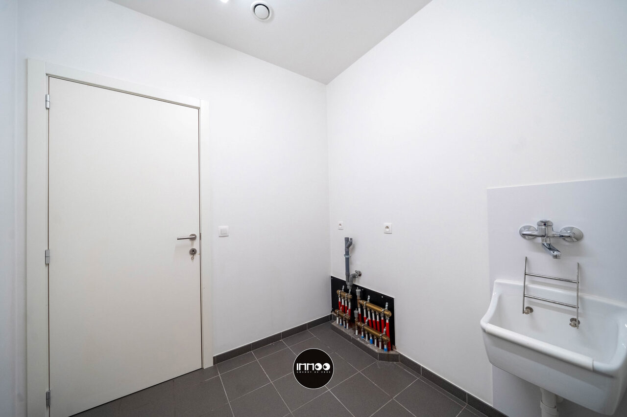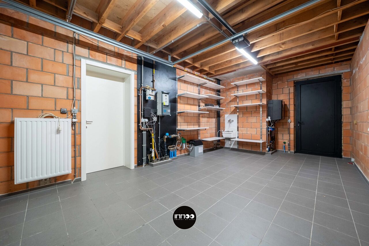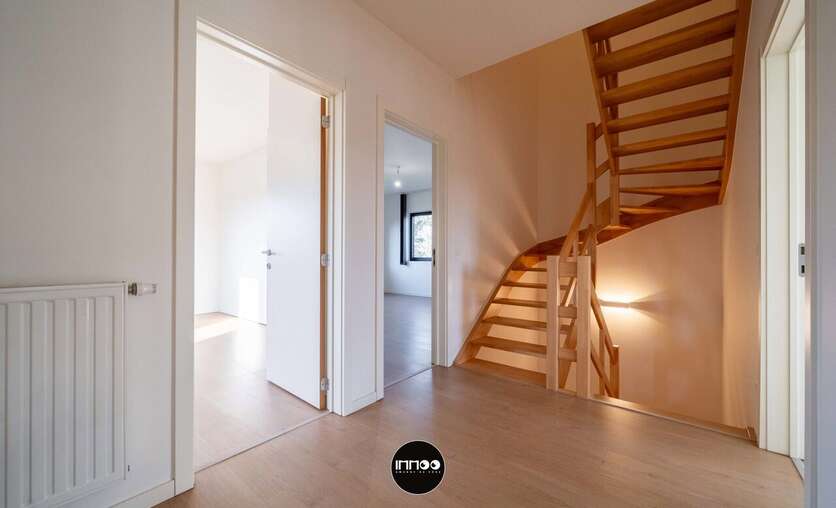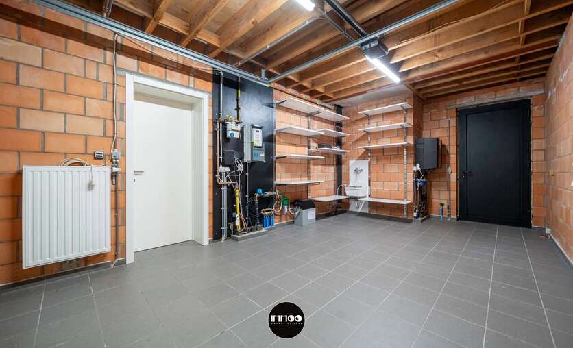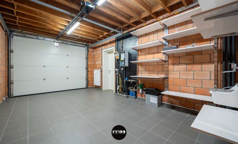 Bij het betreden van deze woning kom je in een aangename inkomhal die meteen een gevoel van ruimte en functionaliteit uitstraalt. Rechts bevindt zich een praktische wasruimte met aansluitingen en is er toegang tot de inpandige garage. De ruime garage biedt plaats voor een wagen en extra opbergruimte. Verder vind je een vestiaireruimte en een gastentoilet. Via de trappenhal kom je in de open leefruimte waar licht en ruimte centraal staan. De mooie open living baadt in het daglicht dankzij de grote raampartijen en sluit links naadloos aan op de volledig uitgeruste keuken, die eveneens geniet van een overvloed aan natuurlijk licht.